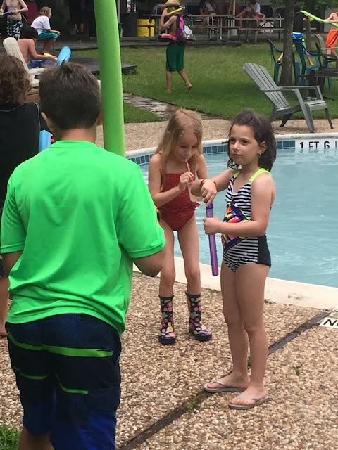 Then we went to Maya's party at the pool. Even though it was POURING down rain, the party was super fun!